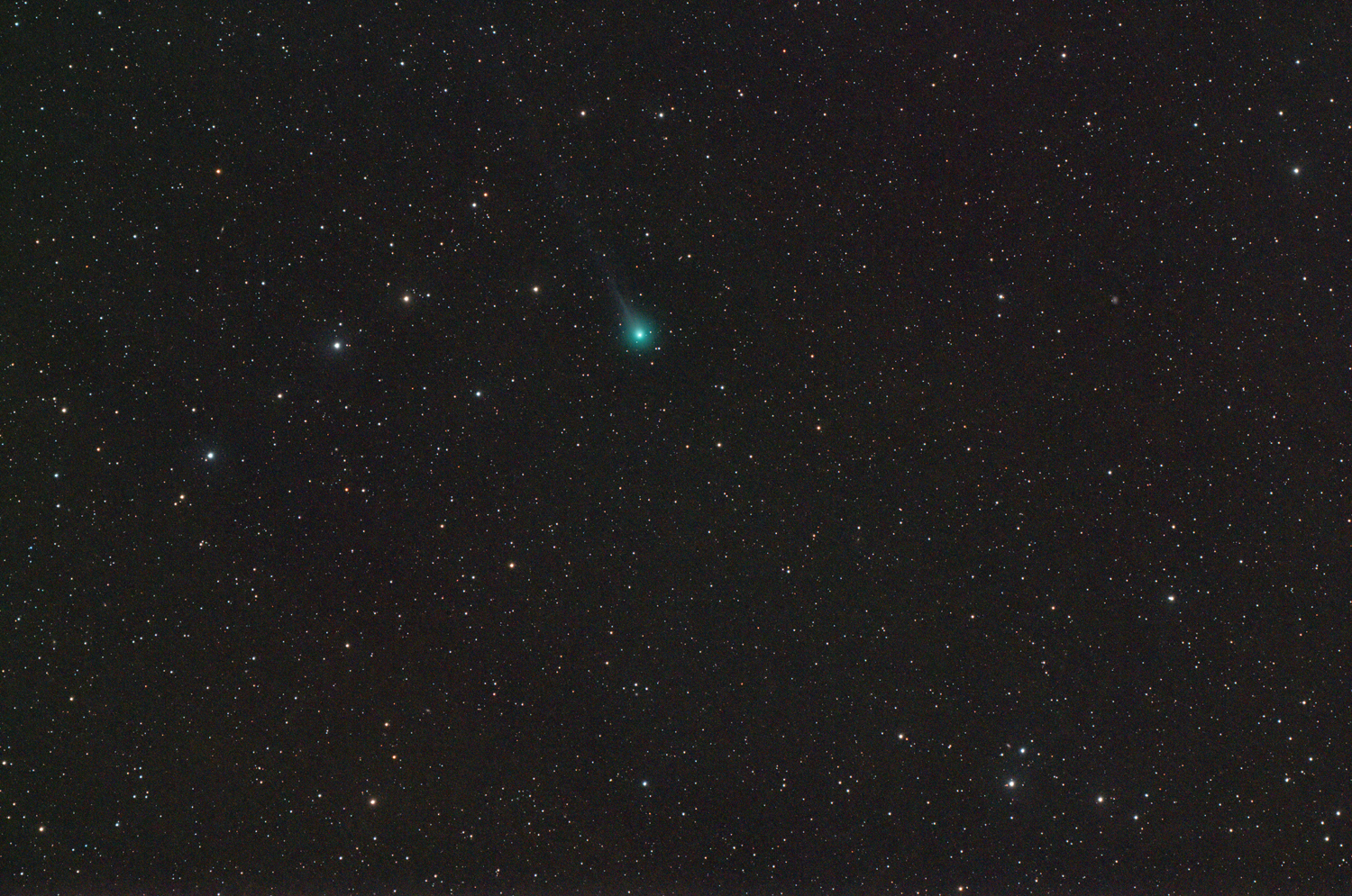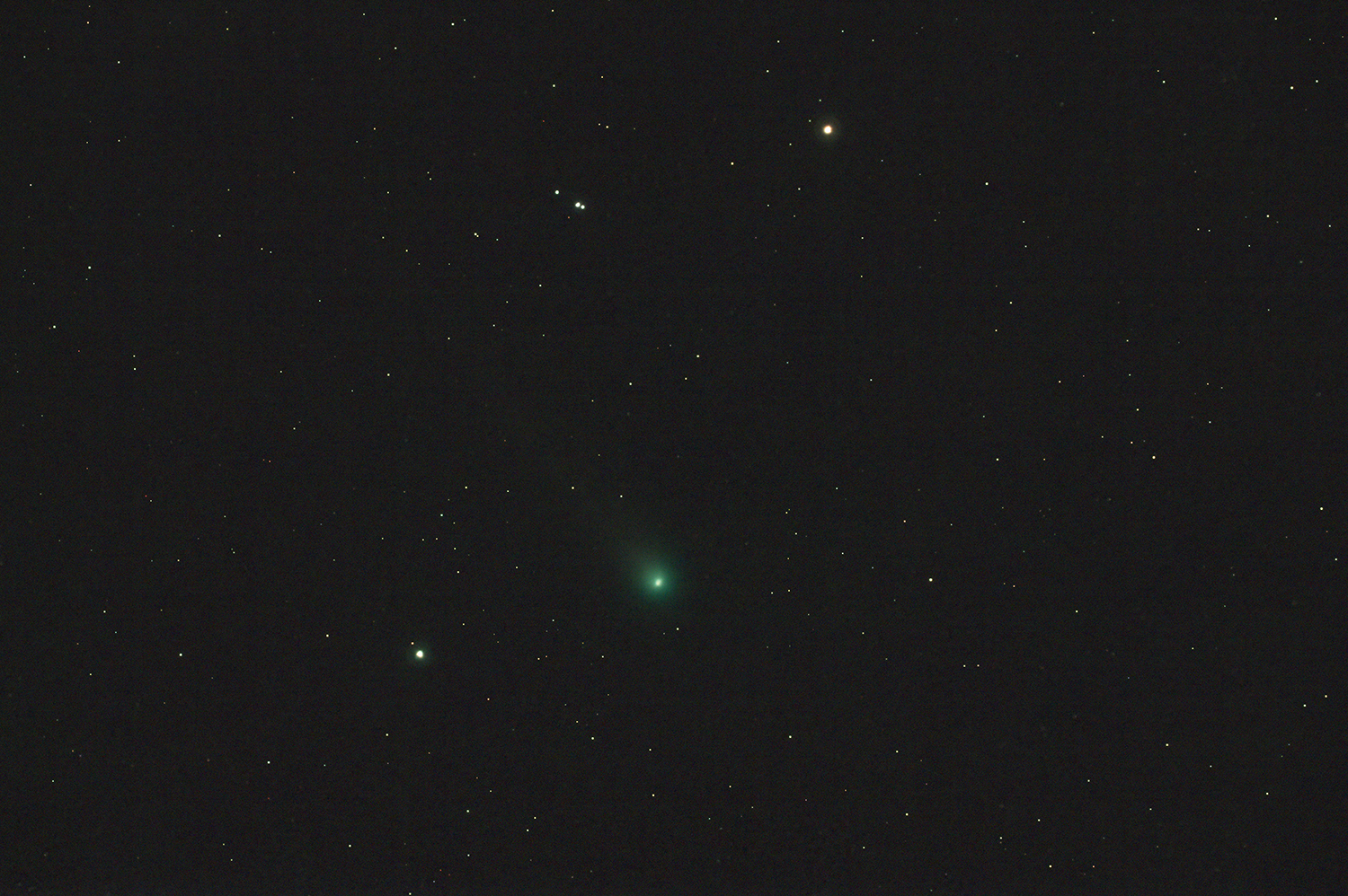 Komet Lovejoy (C/2014 Q2), langperiodischer Komet, der nach ca. 11.000 Jahren wiederkehren wird, mit ganz feinem Schweif (Größenordnung am Himmel: ähnlich wie Andromeda-Galaxie).