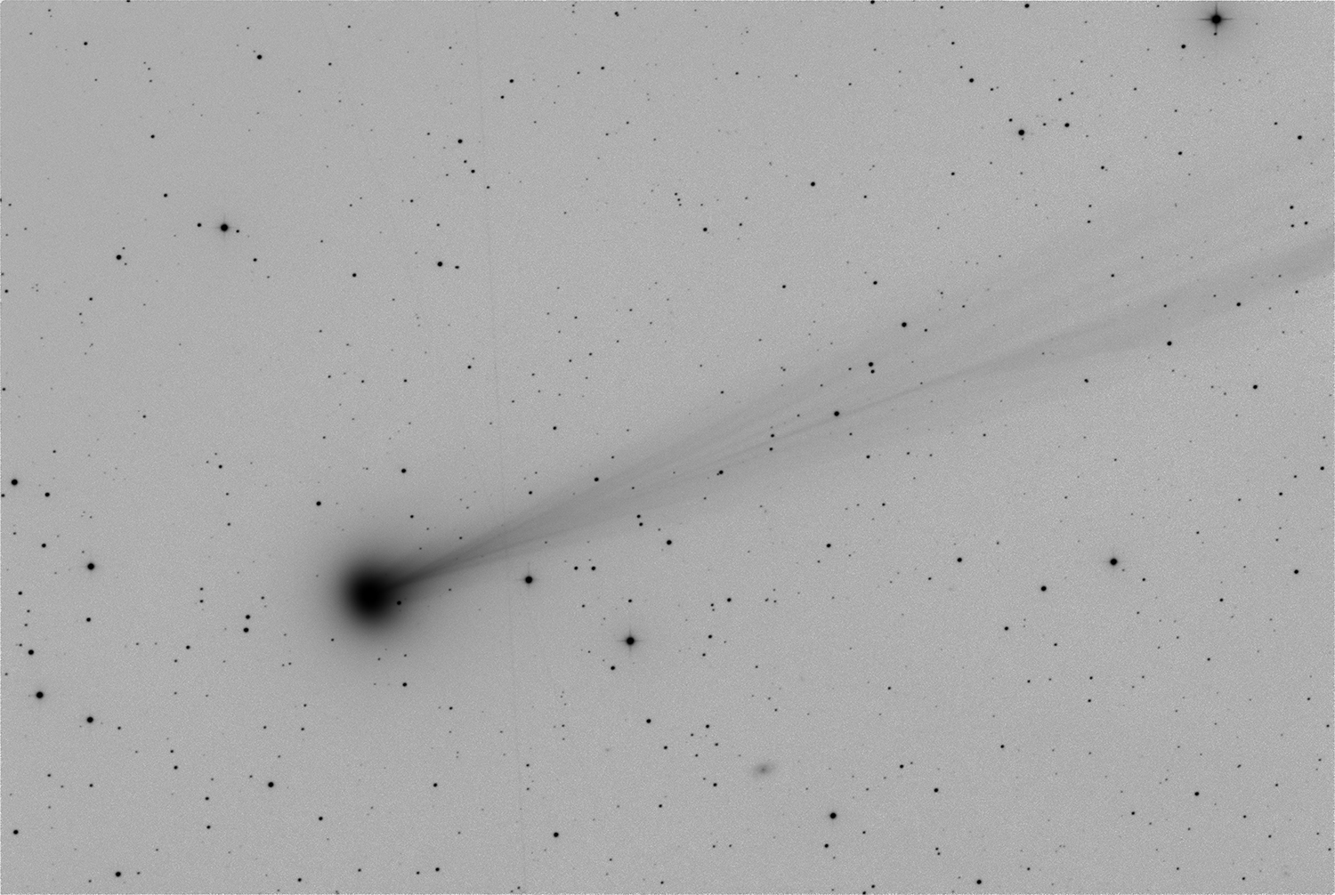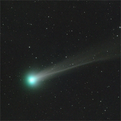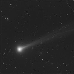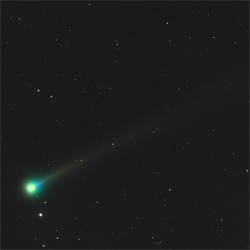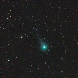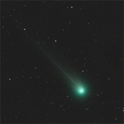 Unser Sonnensystem wird häufig von Kometen durchstreift, die bestimmte periodische Eigenschaften besitzen. In Sonnennähe ist der meist nur wenige Kilometer große Kometenkern von einer diffusen, nebeligen, Koma genannten Hülle umgeben, die eine Ausdehnung von bis zu 2,7 Millionen km erreichen kann. Kern und Koma zusammen nennt man auch den Kopf des Kometen. Das auffälligste Kennzeichen der von der Erde aus sichtbaren Kometen ist jedoch der Schweif, der bei großen und sonnennahen Objekten eine Länge von mehreren 100 Millionen Kilometern erreichen kann. Meistens sind es aber maximal nur einige 10 Millionen Kilometer. Kometen aufzuspüren und selbst aufzunehmen ist immer eine spannende Angelegenheit. Das liegt zum einen an ihrer schnellen Eigenbewegung und zum anderen an ihrem unterschiedlichen Aussehen. Der Schweif beispielsweise ist immer sehr unterschiedlich, aber auch die Farbe kann variieren. Die meistens Kometen wird man nur ein einziges Mal in seinem Leben sehen, da das Erscheinungsintervall für uns Menschen einfach zu hoch ist. Umso glücklicher ist man daher, wenn gute Bedingungen vorlagen und anhand der richtigen Ephemeriden (Positionswert sich bewegender astronomischer Objekte) der Kometen selbst aufgenommen bzw. beobachtet werden konnte.