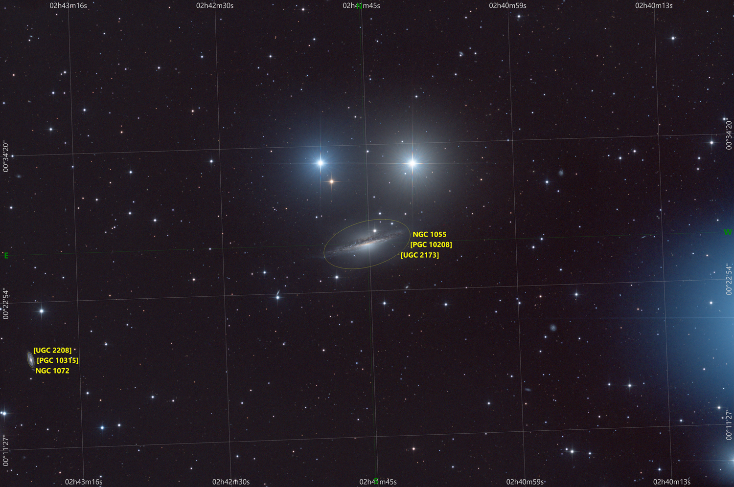 NGC7331 (Spiralgalaxie) mit Stephans Quintett (Gruppe von fünf Galaxien im Sternbild Pegasus)