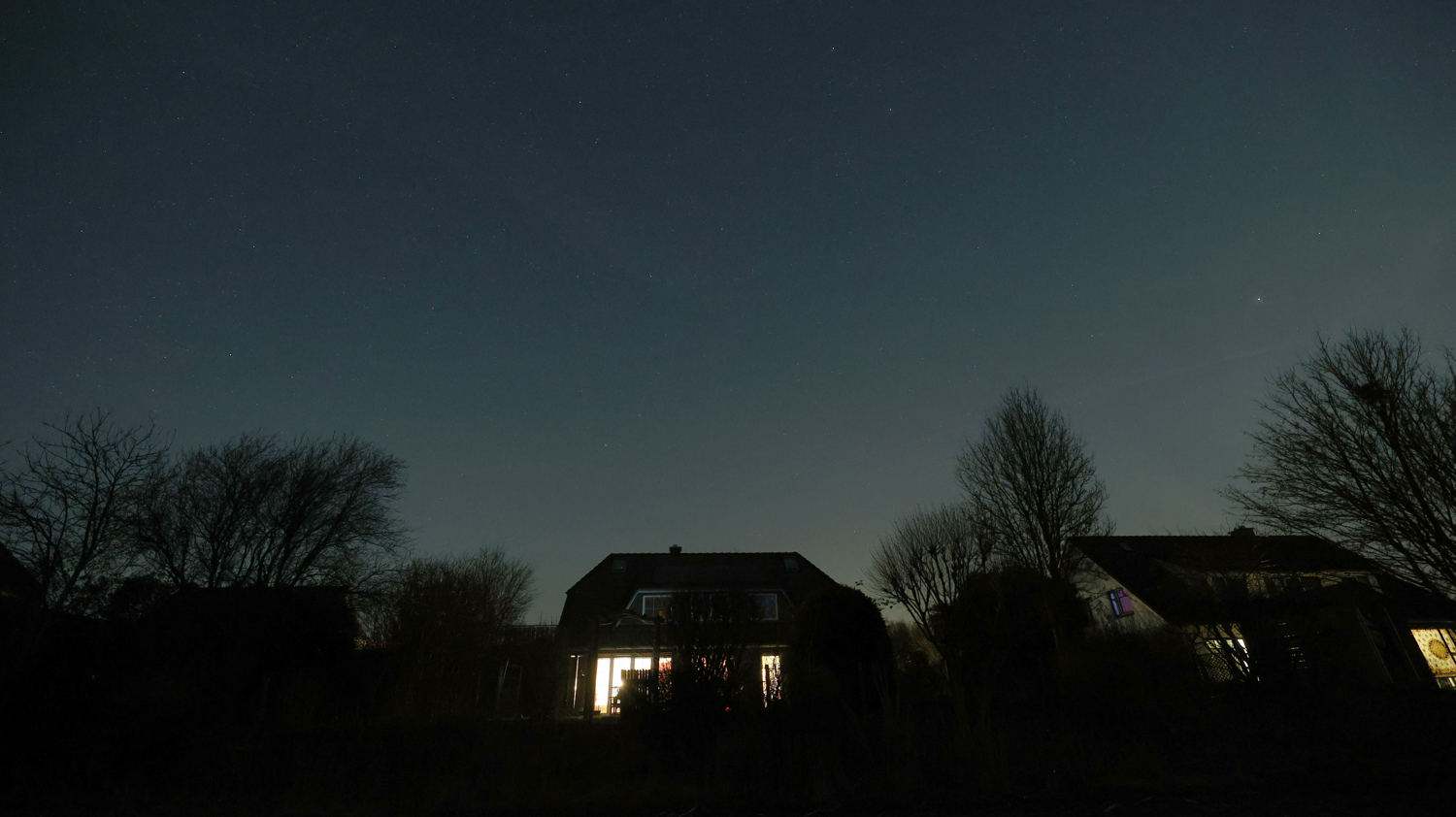 Ausschnitt der Milchstraße am hell erleuchteten Ort Cosa Teguise (Sicht vom Balkon des Appartments).