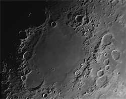 Krater Clavius, Maginus und Tycho (von unten nach oben).