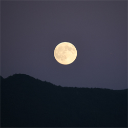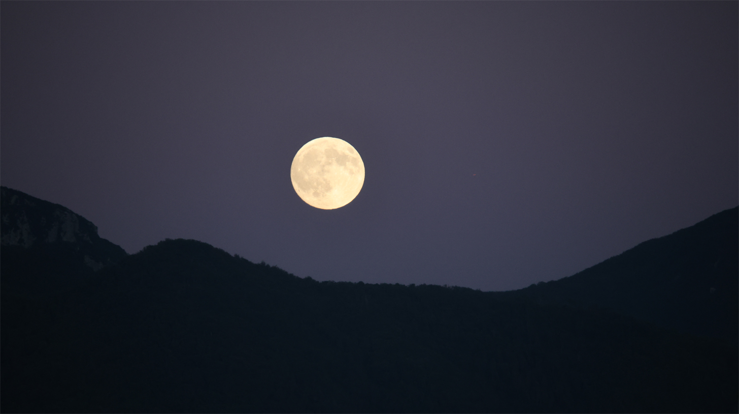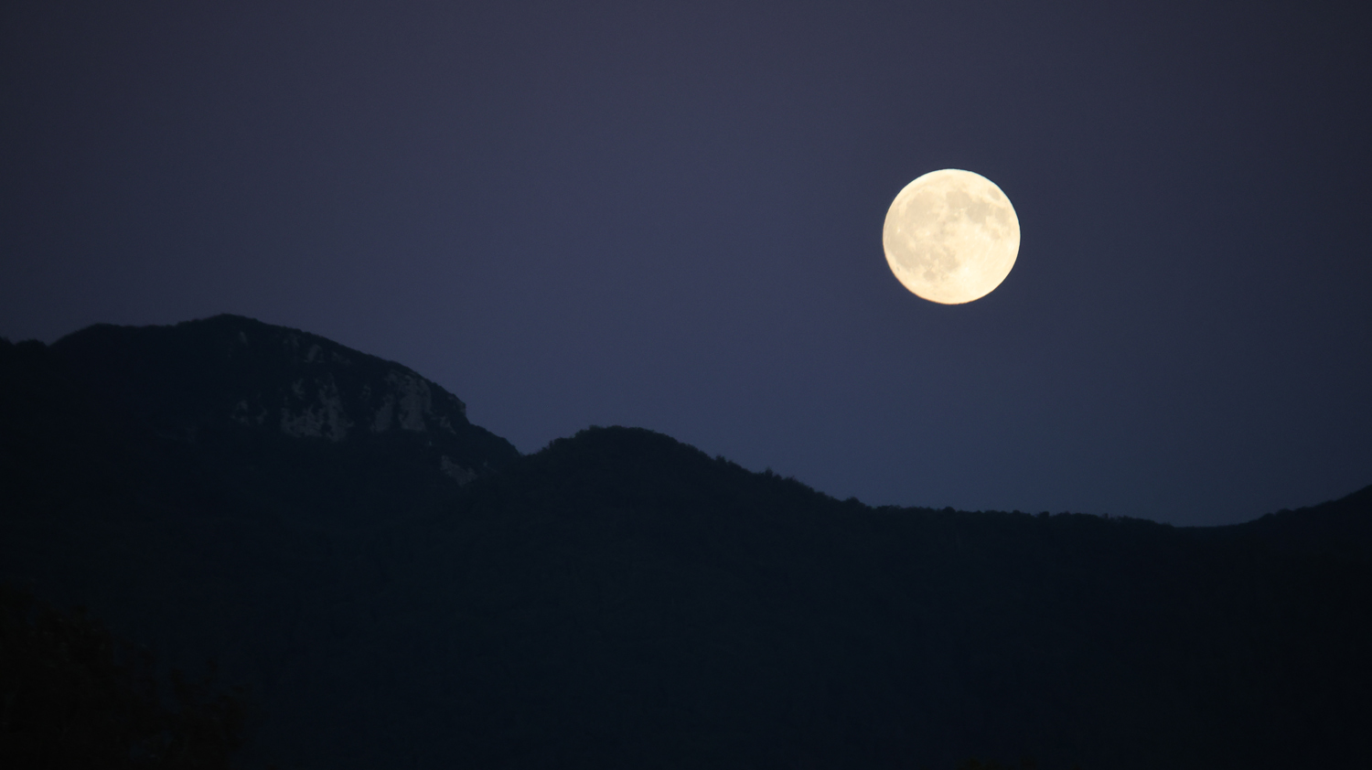 Vollmond über Grasberg, morgens um 5:15 Uhr.