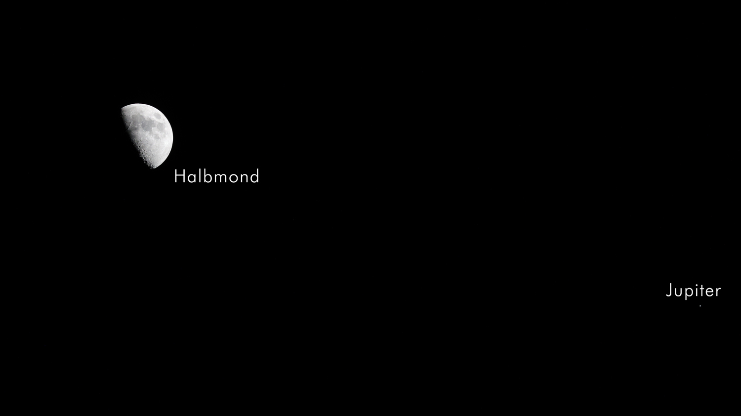 Mond mit Jupiter in Berlin bei der Oberpfarr- und Domkirche.