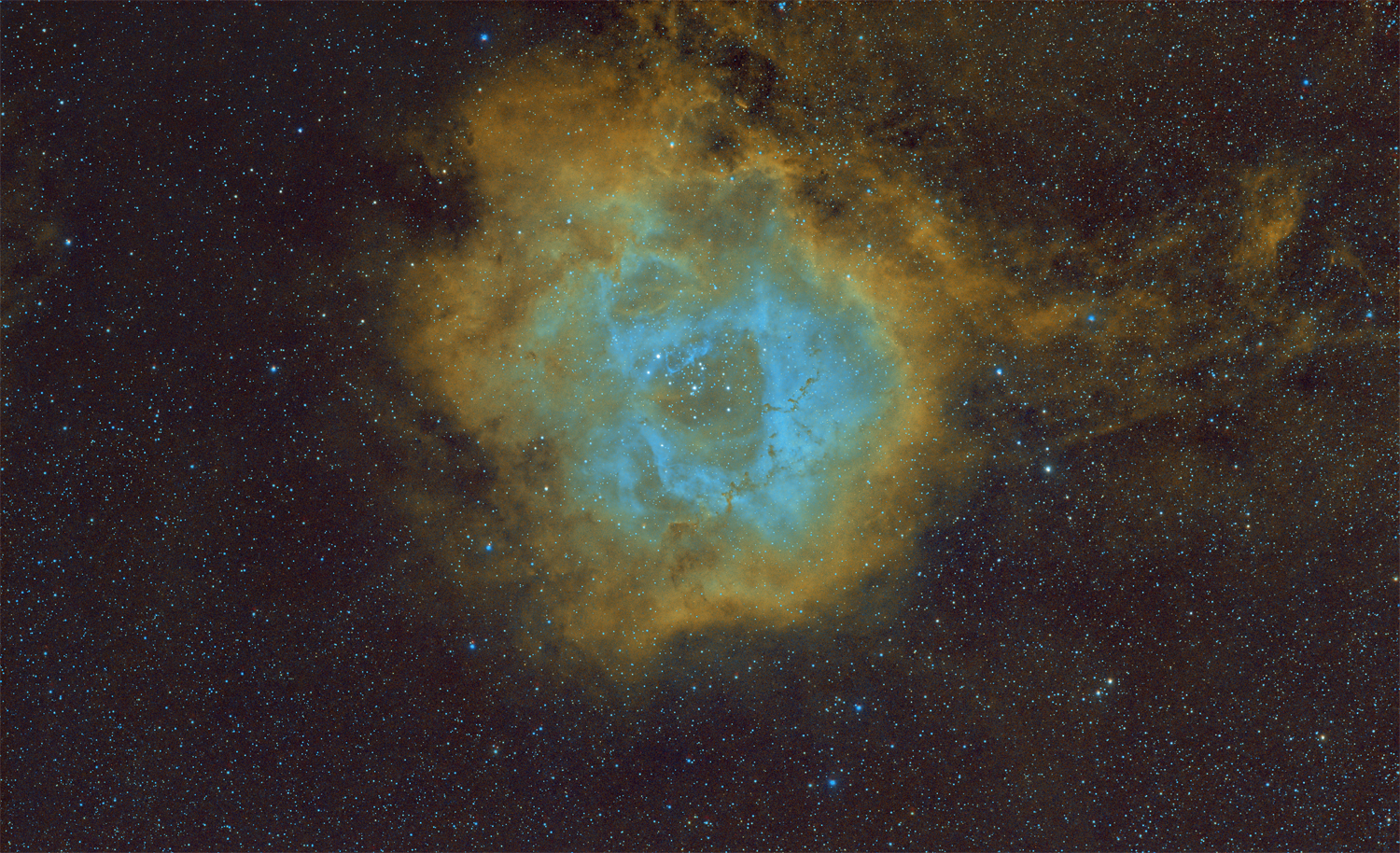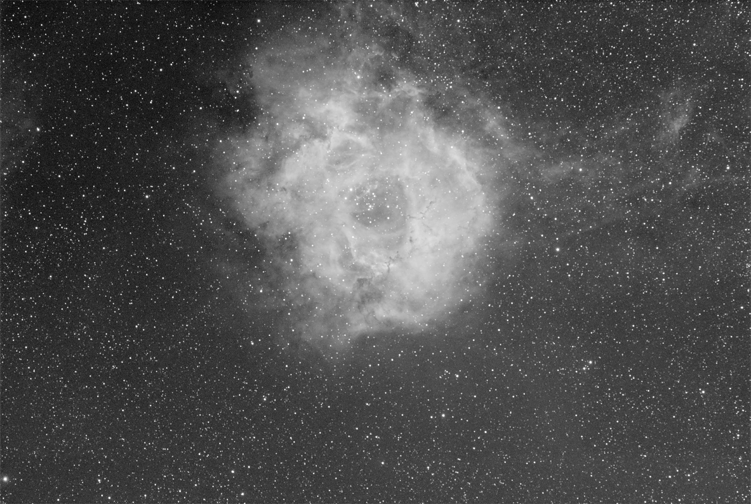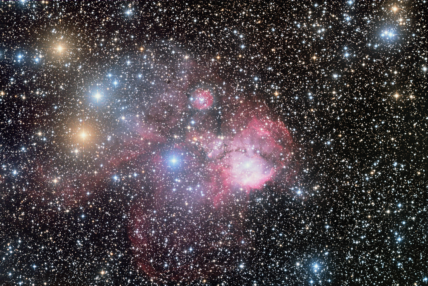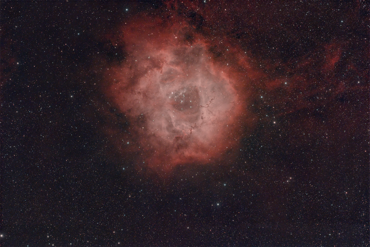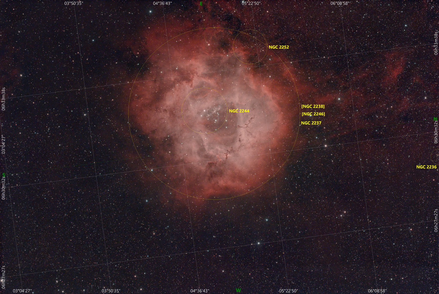 Rosettennebel (NGC 2244), diffuser Emissionsnebel mit offenem Sternhaufen NGC 2244 im Zentrum.