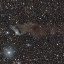 Pferdekopfnebel B33 (Dunkelwolke) mit zwei Gürtelsternen des Orion (Mintaka und Alnilam).