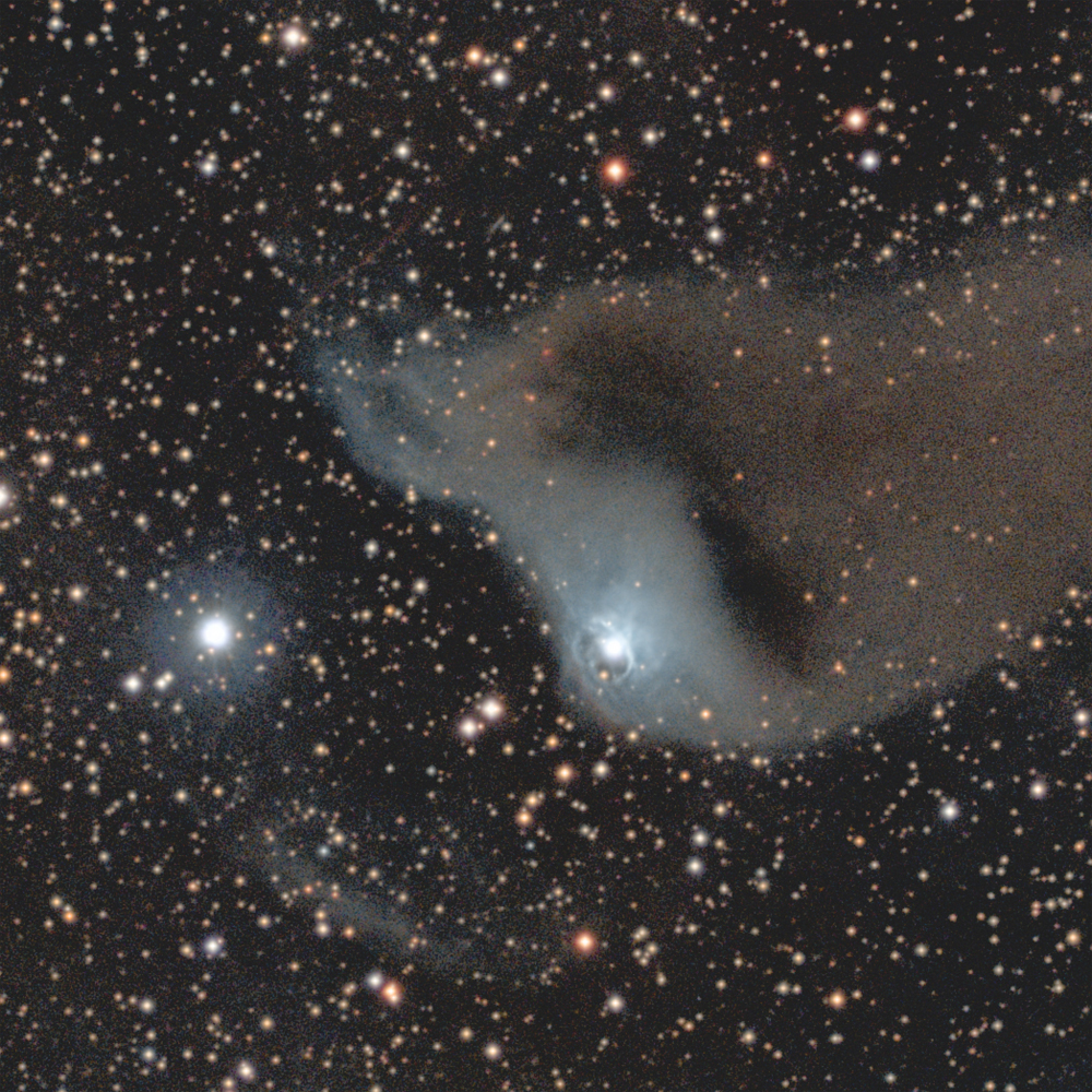 B33 - Pferdekopfnebel: Ansammlung von kaltem Gas u. Staub mit dem Flammennebel (Sternentstehungsgebiet).