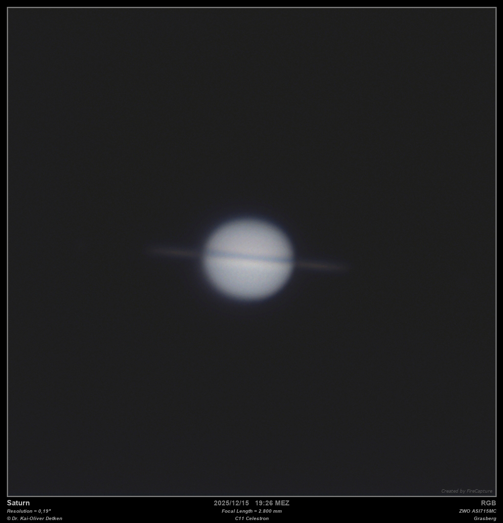 Saturn, 6. Planet unseres Sonnensystems, 1,43 Mrd. km Sonnenentfernung (am 10. Mai war Opposition des Planetens)