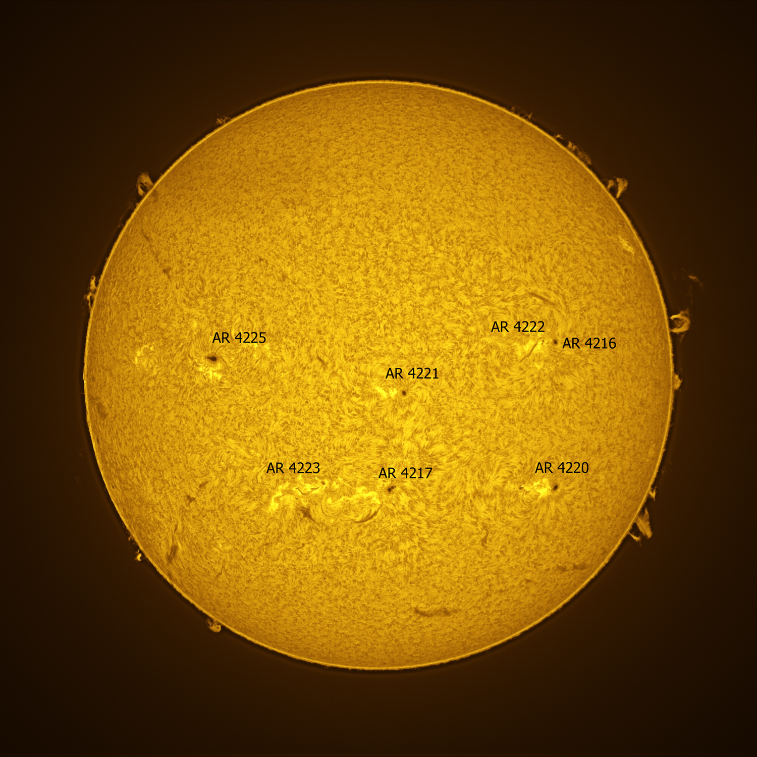 Sonnenfleckengruppe im H-Aplpha-Licht (kaum Erupsionen)